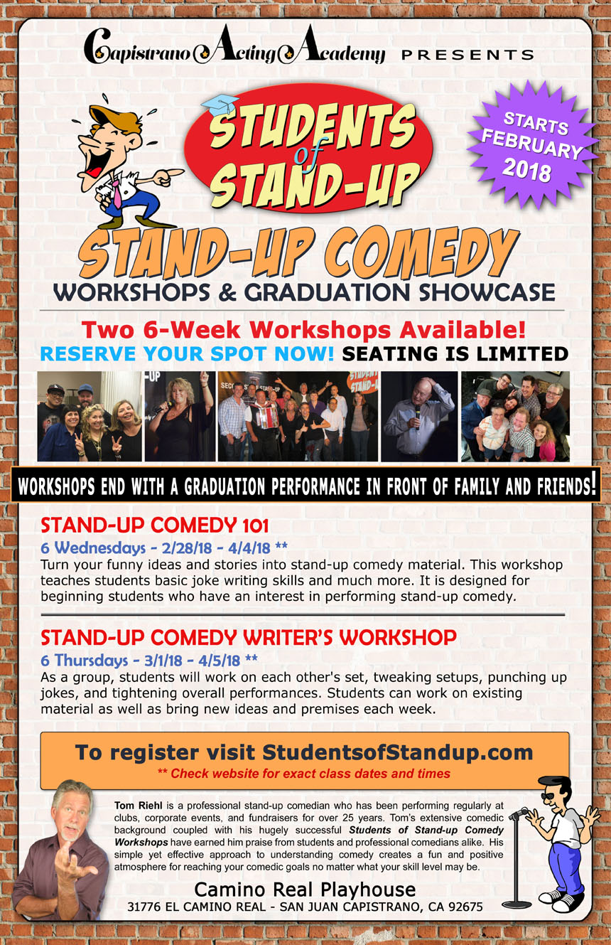 Workshop ends with a graduation performance in front of family and friends. Students are expected to have a working knowledge of comedy writing and joke structure for this Workshop.